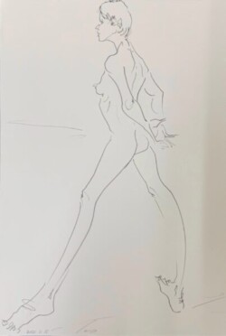 時間軸を超越したかのような、不動のポージングを体現するモデルである。4回に分けて行われた同一ポーズは、まるでストップモーションアニメのように、寸分の狂いもない。