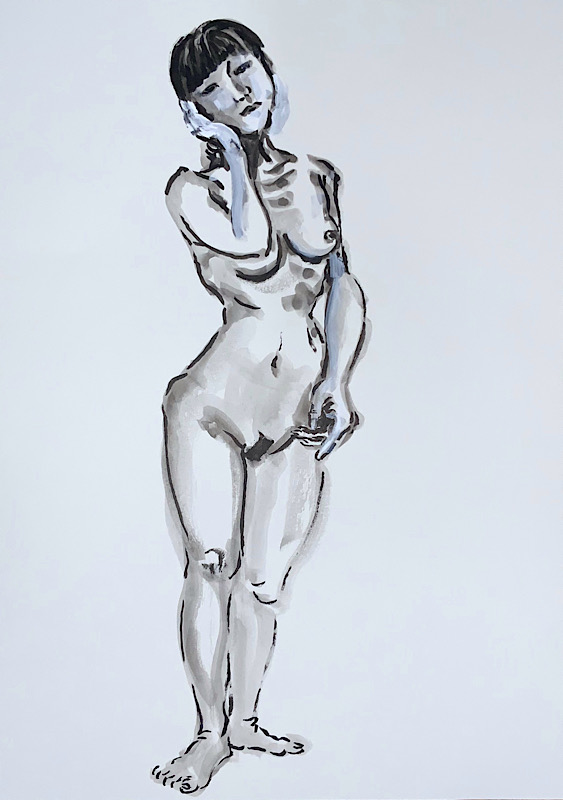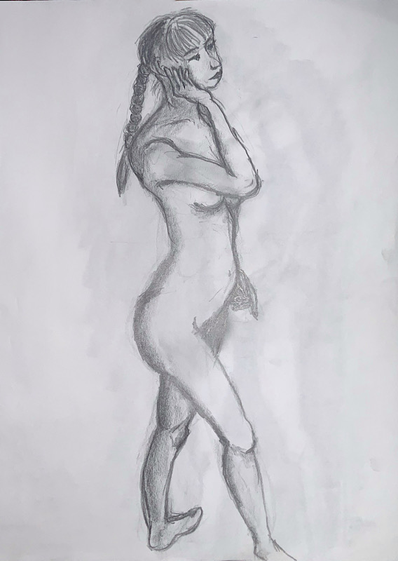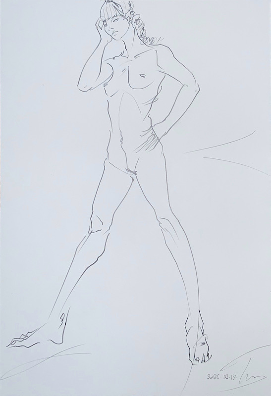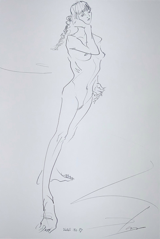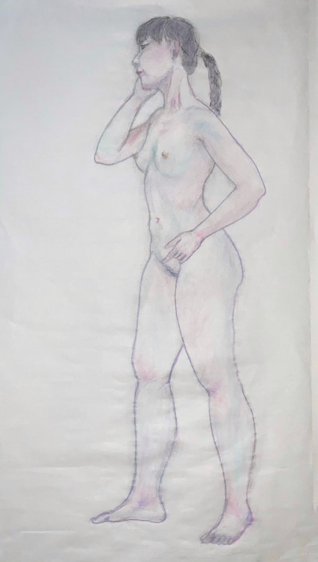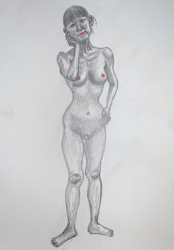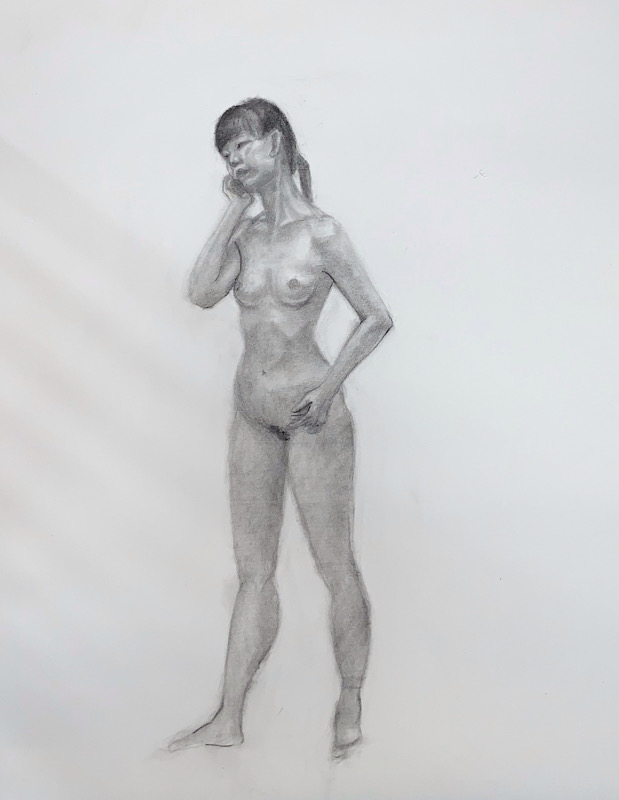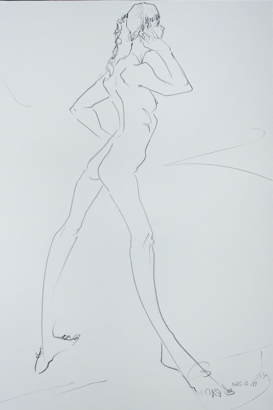 芸術的完成度と知性 小柄ながら、その肢体はギリシャ彫刻のように均整が取れ、見る者を圧倒します。20分×4回の長丁場でも一切形を崩さない驚異の集中力は、描き手に至福の安定感を与えてくれます。美術への造詣も非常に深く、作品への理解に基づいたポーズの表現力は秀逸。美しさと知性が共鳴する、稀有なモデルさんです。