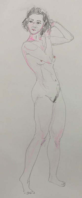 華やかな美貌と、ダンスで鍛えられた均整の取れた肢体が魅力の絵画モデル。クロッキーでは、動きの余韻を感じさせるしなやかなポーズで、どの瞬間も絵になります。生命力に満ちたその佇まいは、見る者の心に深いインスピレーションを与え、創造意欲を掻き立てます。