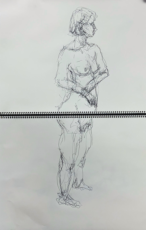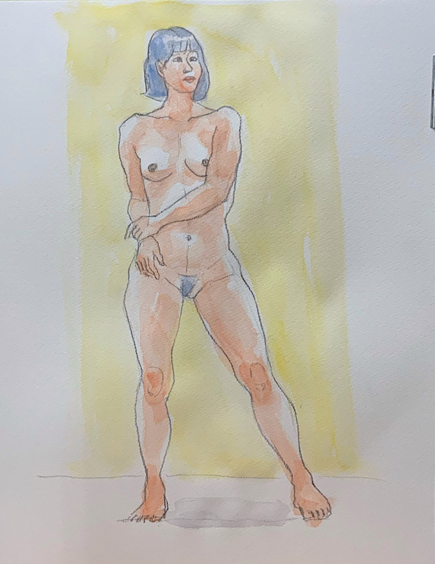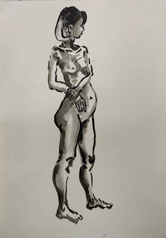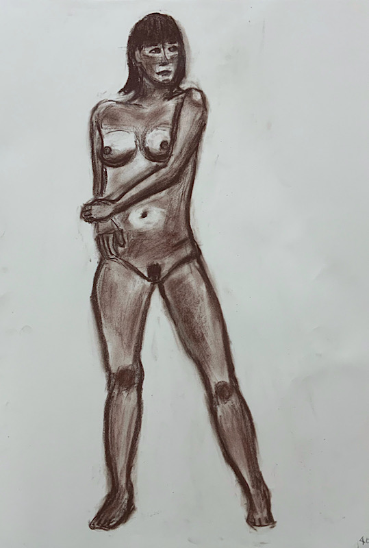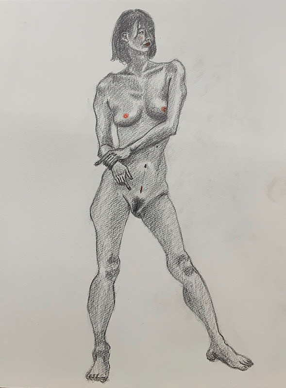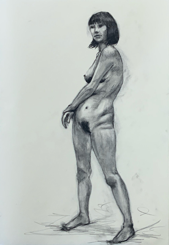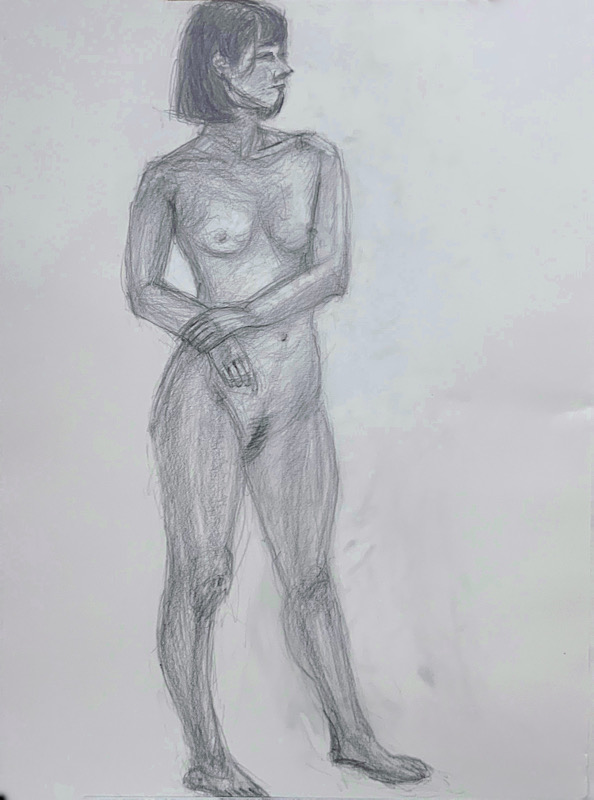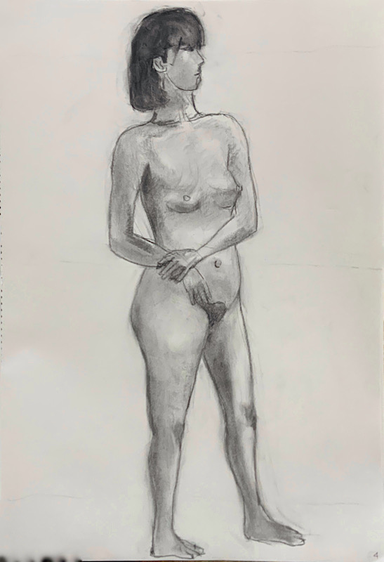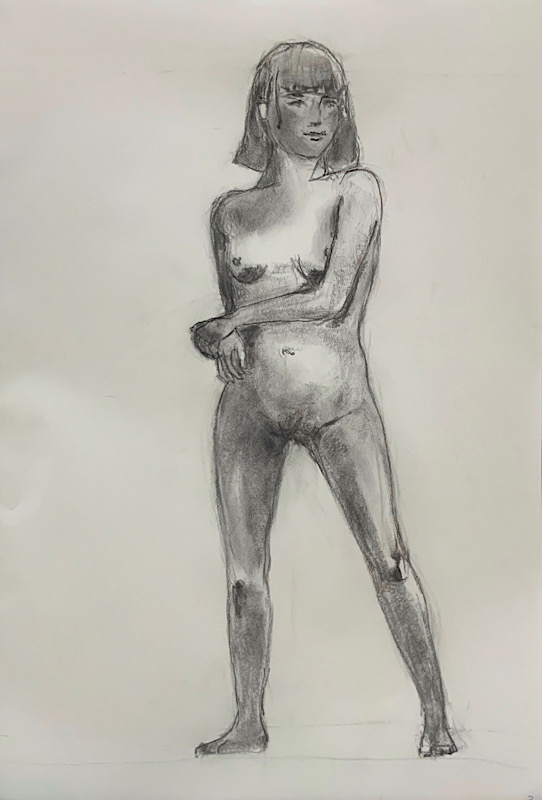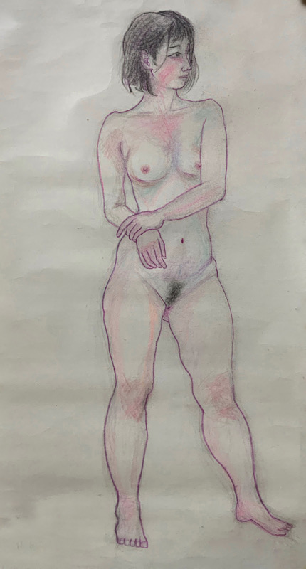 スタジオを魅了した美貌のモデルさんです。デッサンポーズ中、微動だにせず、最後まで美しい瞳を開き続けました。休憩時間には熱心にご自身の絵を見に来られ、次回のポーズに活かす研究熱心さも。本日集った画家たちは、彼女の姿に深く魅了されました。