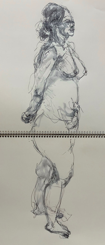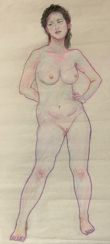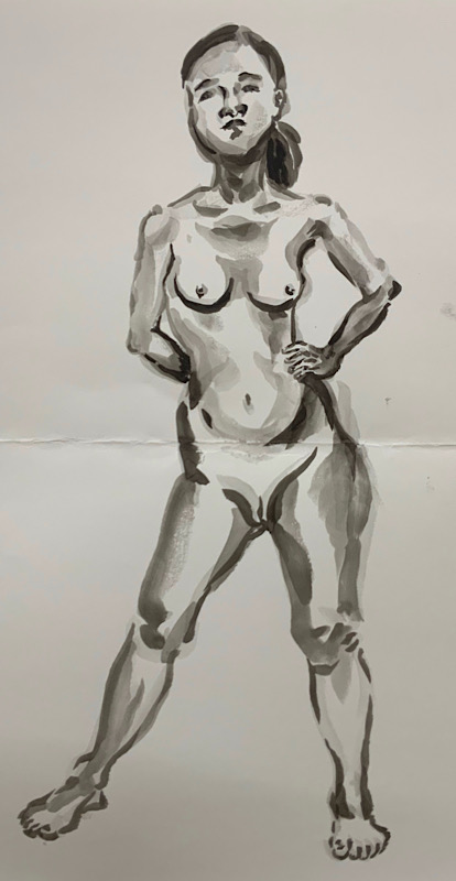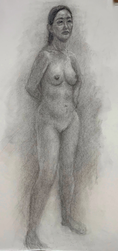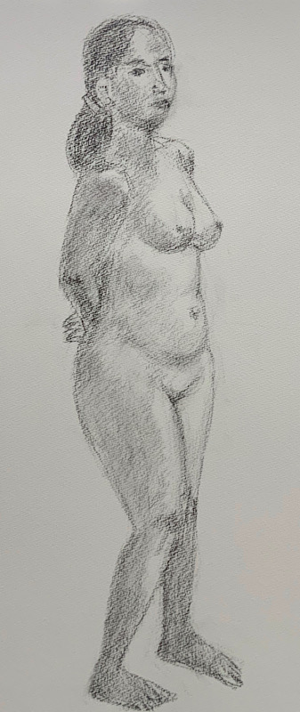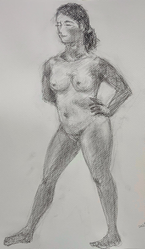 内から滲み出るような魅力と、しなやかな曲線が美しい絵画モデルです。80分間微動だにしない集中力は圧巻で、その研ぎ澄まされたポーズは、画家たちの筆を誘います。セッション後も熱心にデッサン作品を鑑賞する姿は、モデル業への深い敬意と情熱を示し、参加者からの信頼を得ています。
